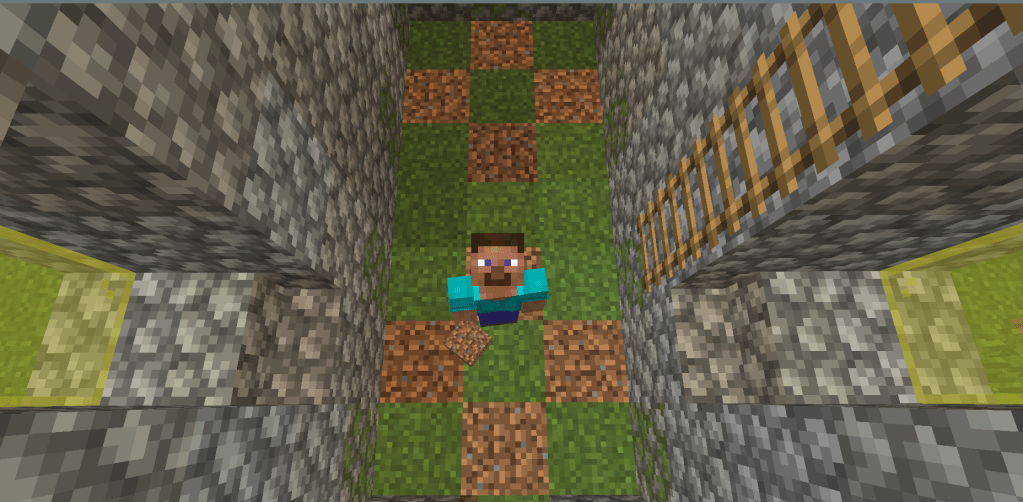 Inside, there’s no floor! It’s just grass and dirt. Steve doesn’t like that. He wants to build a floor out of sandstone.